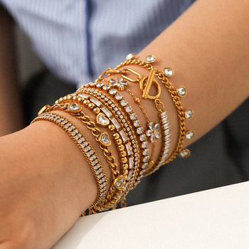 Modeschmuck Armband Edelstahl Zirkon Ketten armband für Frauen B151