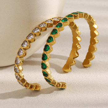 Moda Jóias Pulseira 18k Banhado A Ouro De Aço Inoxidável Coração De Zircão Manguito Pulseiras para As Mulheres B144