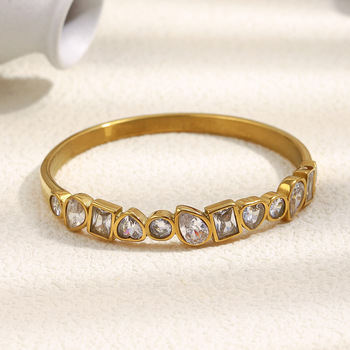 Moda Jóias Pulseira 18k Banhado A Ouro De Aço Inoxidável Geométrica Zircon Manguito Pulseiras para As Mulheres B146
