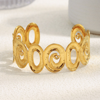 Moda takı bilezik 18k altın kaplama paslanmaz çelik Hollow manşet bilezikler kadınlar için B149